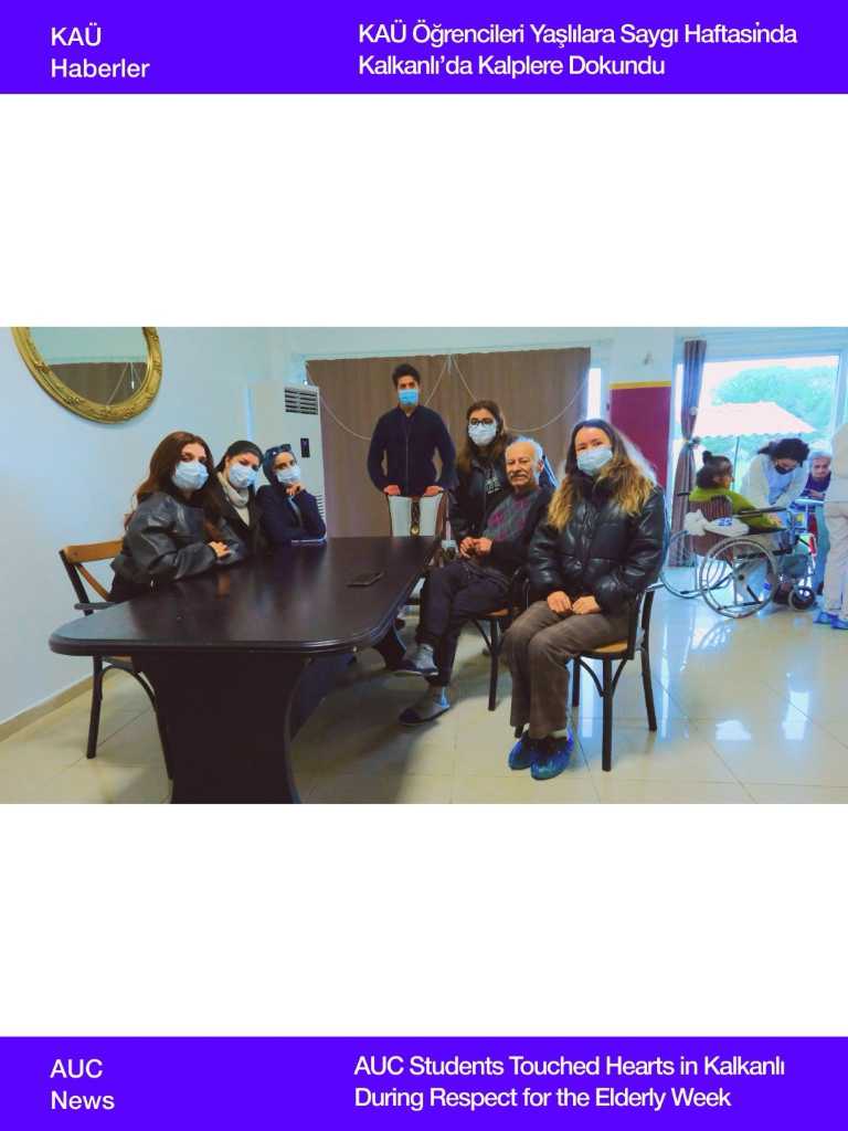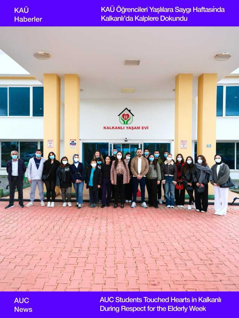 Kıbrıs Amerikan Üniversitesi (KAÜ) Sağlık Meslek Yüksekokulu (SMYO) Anestezi Bölümü öğrencileri, 18–24 Mart Yaşlılara Saygı Haftası kapsamında Kalkanlı Yaşam Evi’nde anlamlı bir sosyal sorumluluk projesi gerçekleştirdi. Lefke Yardım ve Halk Derneği iş birliğiyle düzenlenen etkinlikte öğrenciler, yaşlı bireylerle bir araya gelerek hem mesleki hem de insani değerlerini pekiştirme fırsatı buldu. Etkinlik kapsamında dernek aracılığıyla bağışlar yapılırken, yaşlılara çeşitli hediyeler de dağıtıldı.