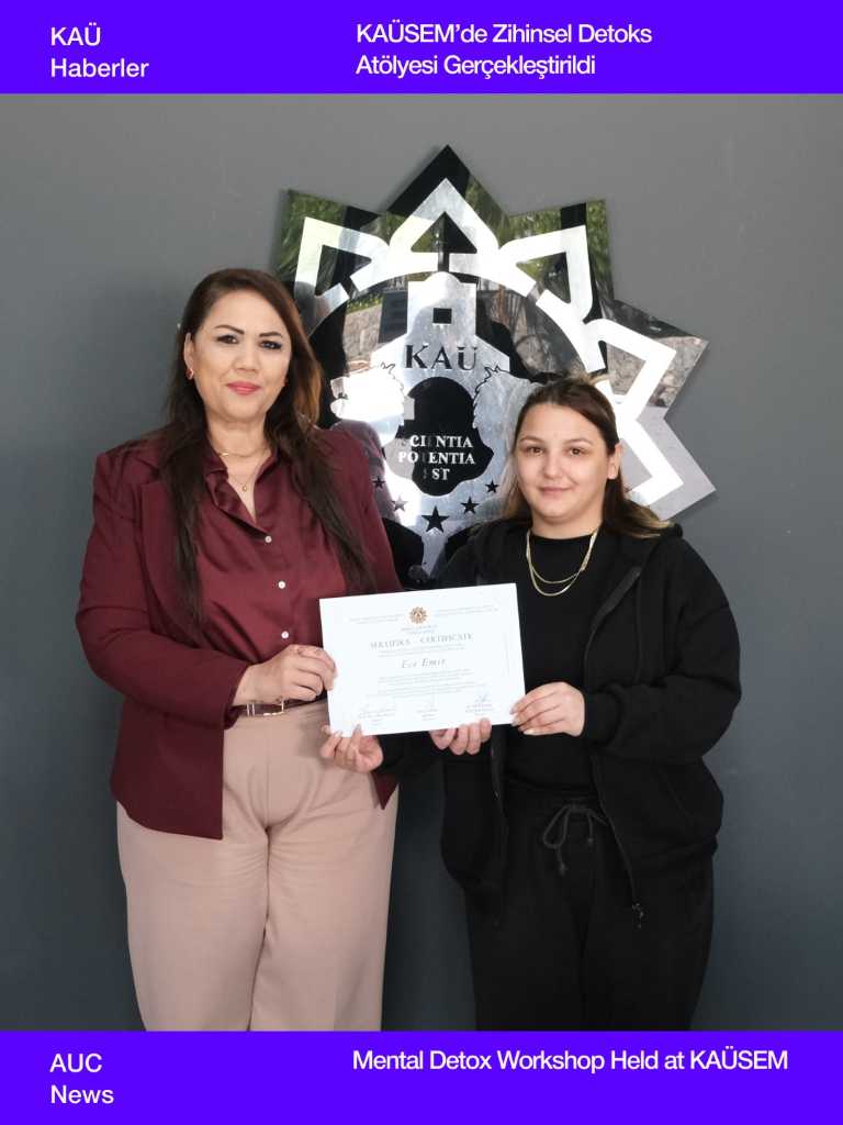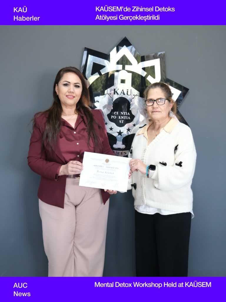 Kıbrıs Amerikan Üniversitesi Sürekli Eğitim Merkezi (KAÜSEM) tarafından düzenlenen Zihinsel Detoks Workshop’u, katılımcıların yoğun yaşam temposu içinde zihinsel farkındalık kazanmalarına ve düşünsel yüklerini hafifletmelerine katkı sağlamak amacıyla gerçekleştirildi.